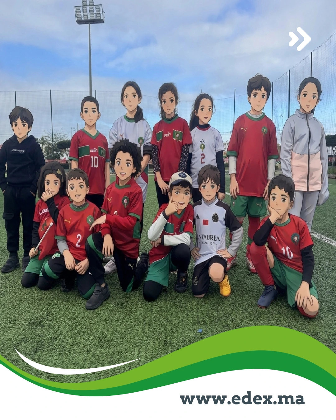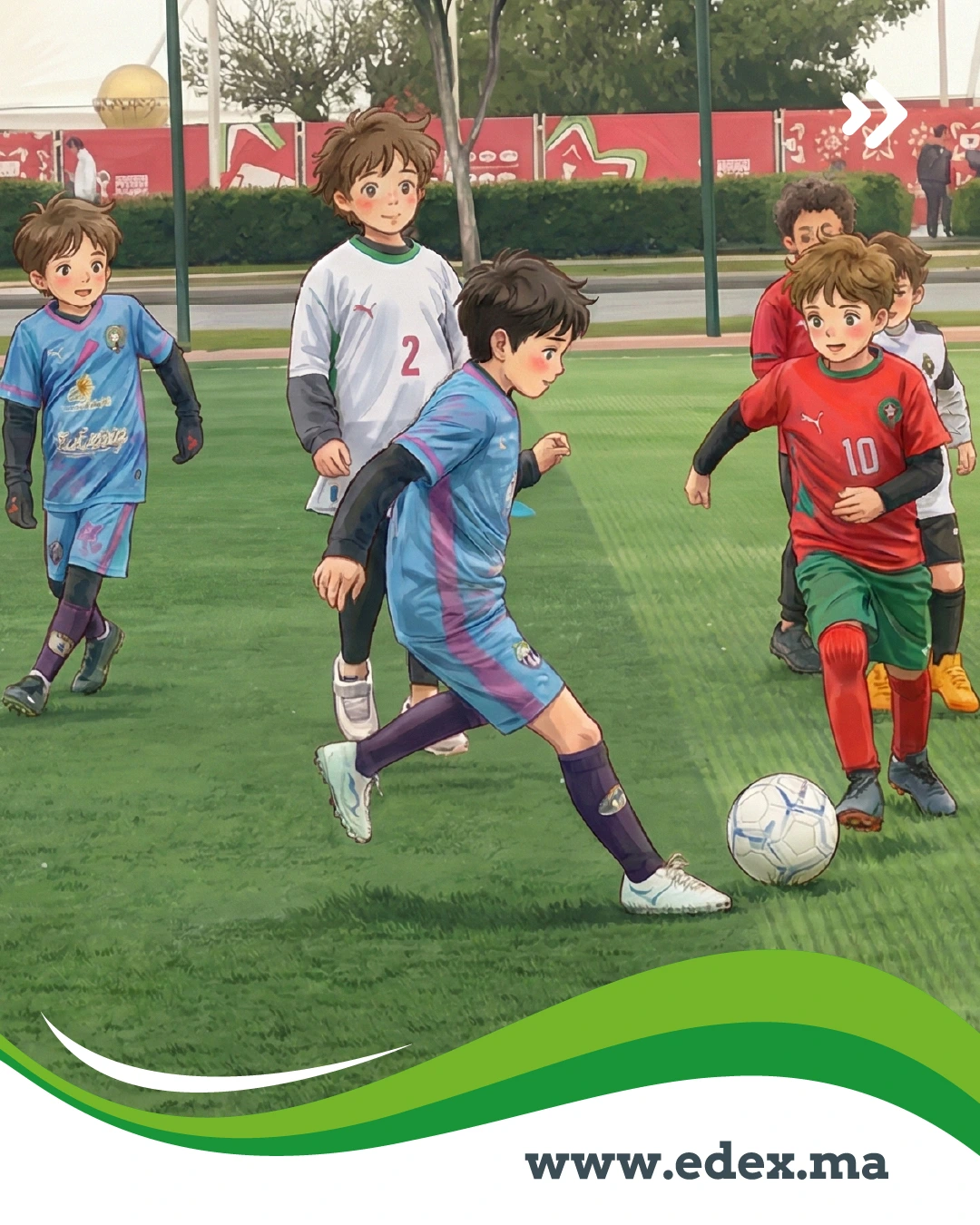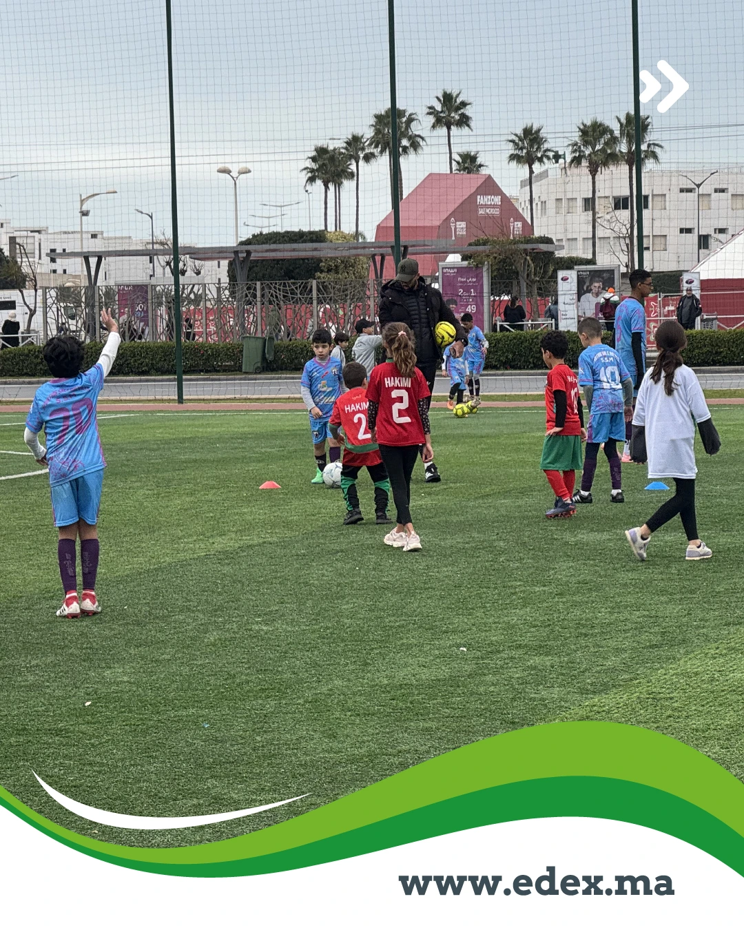 Avant de chausser les crampons lors de notre sortie à la Marina de Salé dimanche dernier 11 janvier, les élèves sont passés par l'atelier peinture. L'objectif ? Réaliser leurs propres tenues de match. Avec beaucoup d'application, chaque enfant a peint un drapeau sur un t-shirt blanc, s'appropriant ainsi l'identité des pays qui feront vibrer le Maroc en 2025.